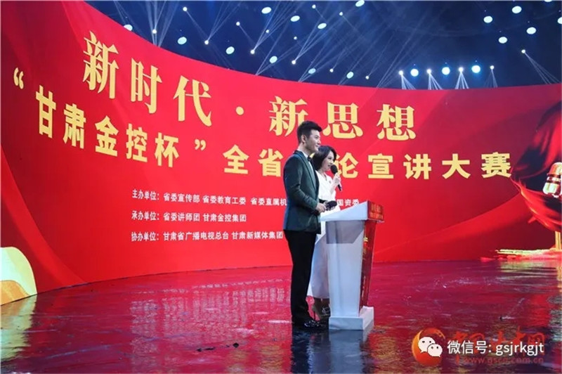 承办,省广电总台、甘肃新媒体集团、中国甘肃网协办的新时代·新思想“甘肃金控杯”全省理论宣讲大赛决赛在省广电总台演播大厅举行,并进行了颁奖仪式。