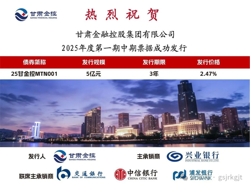 2025年6月10日,米兰体育网页版-米兰体育(中国)官方在线登录 成功发行2025年度第一期中期票据“25甘金控MTN001”,规模5亿元,期限3年,票面利率2.47%,全场倍数2.72倍,体现出市场对集团稳健经营和良好偿债能力的信心。