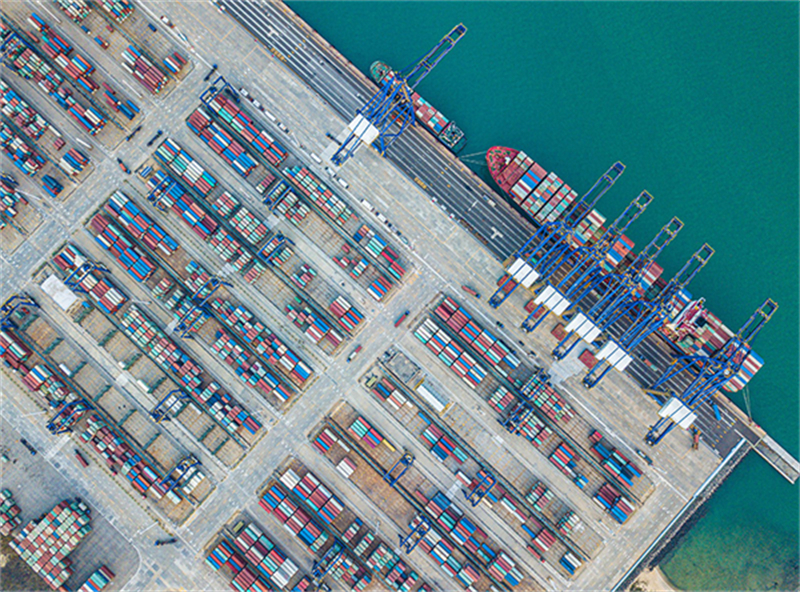 在海南环新英湾地区拍摄的洋浦国际集装箱码头(无人机照片,2月28日)。新华社记者 蒲晓旭 摄