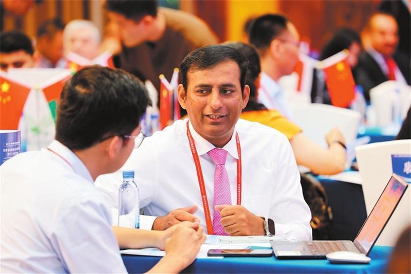 与会嘉宾在新能源及新能源装备制造产业投资发展对接活动现场进行对接洽谈。