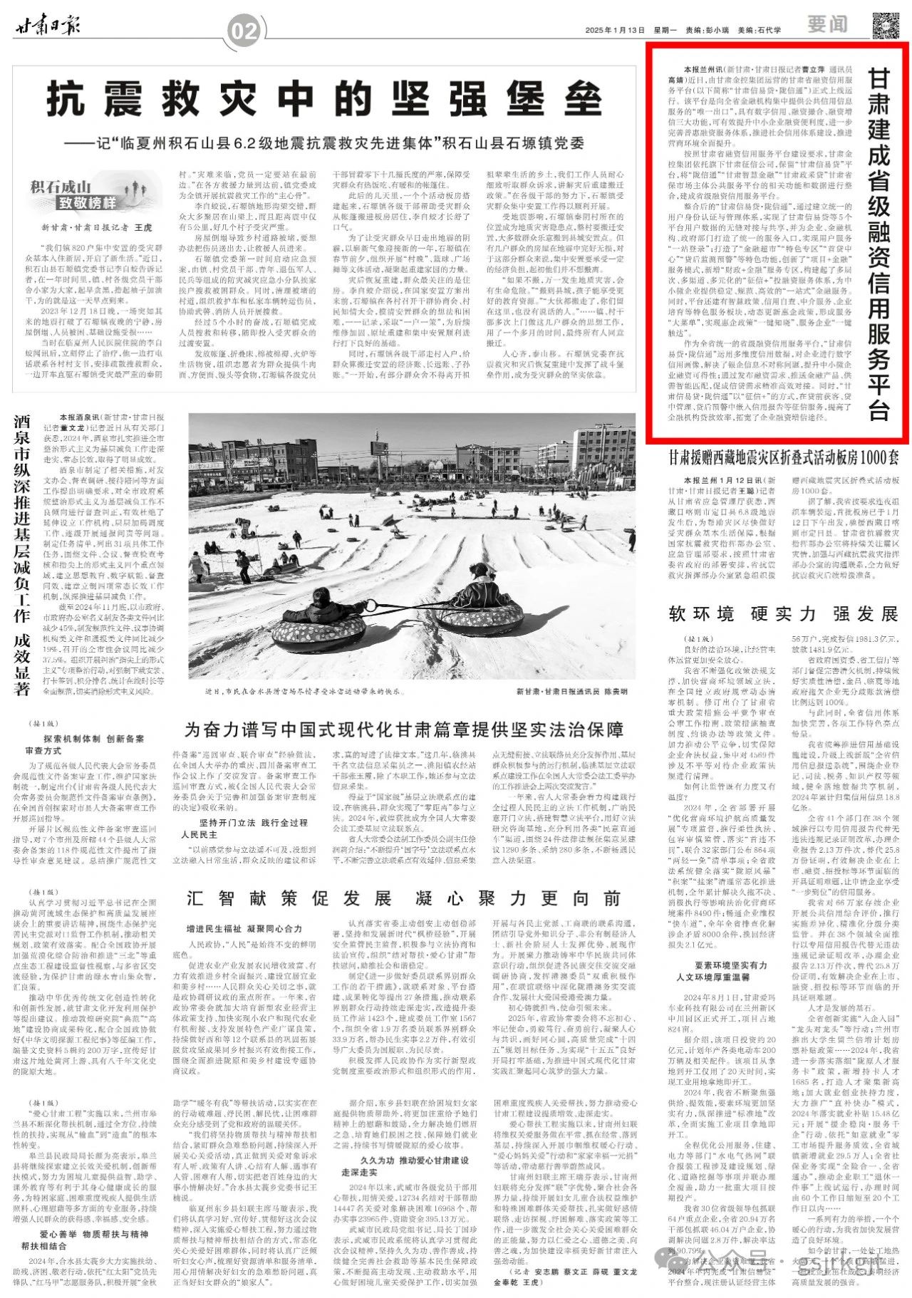 运营的甘肃省融资信用服务平台(以下简称“甘肃信易贷·陇信通”)正式上线运行。该平台是向全省金融机构集中提供公共信用信息服务的“唯一出口”,具有数字信用、融资撮合、融资增信三大功能,可有效提升中小企业融资便利度,进一步完善普惠融资服务体系,推进社会信用体系建设,推进营商环境全面提升。