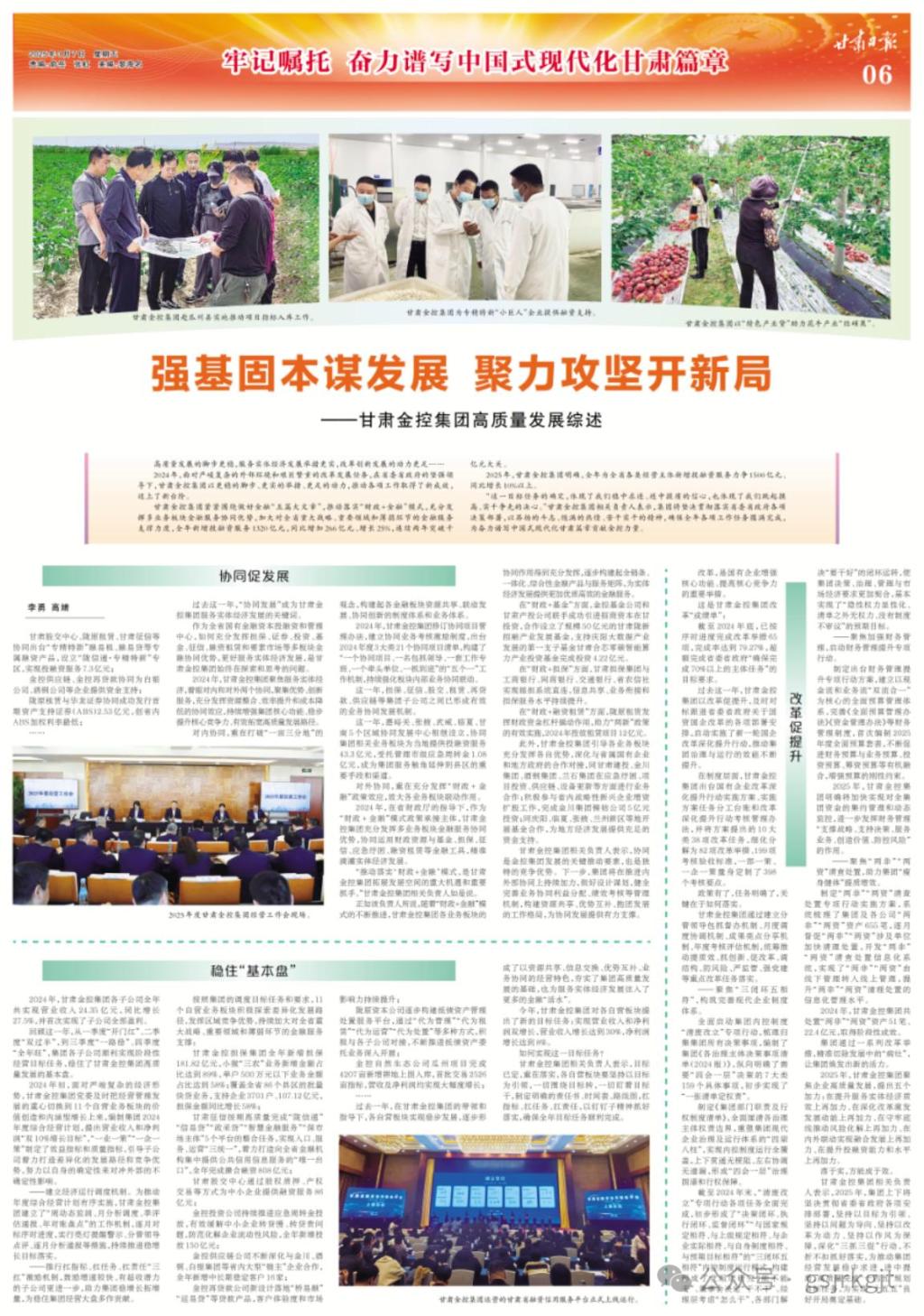 相关负责人表示,集团将坚决贯彻落实省委省政府各项决策部署,以昂扬的斗志、饱满的热情、苦干实干的精神,确保全年各项工作任务圆满完成,为奋力谱写中国式现代化甘肃篇章贡献金控力量。